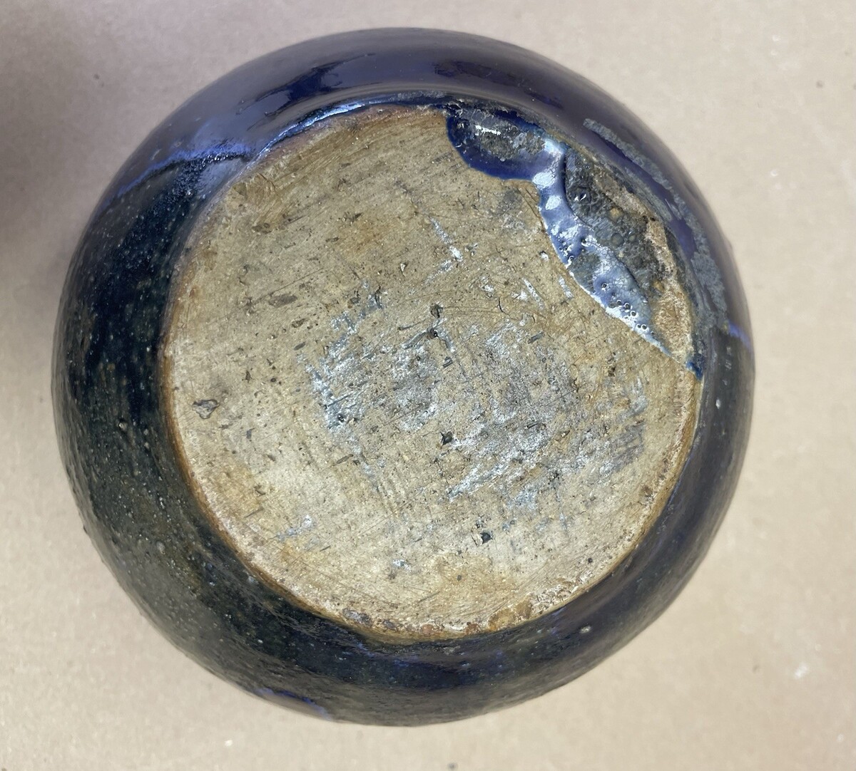 Offered is a beautiful, large, North Carolina pottery flower frog in cobalt blue at the Hilton Pottery. The piece stands about 4 3/4 inches tall and 6 1/2 inches wide. Slightly lopsided in spout area. There is one tiny flake on the spout and an area that looks as if it rubbed in the kiln. Purchase price refunded if item is not as described. Buyer responsible for shipping cost.