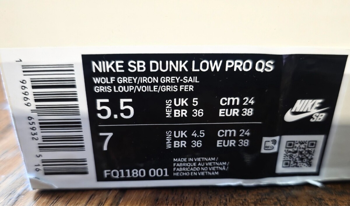 Nike SB Dunk Low Pro Qs Yuto Horigome Gray Pink White 5.5M/7W w/box & SB Sticker