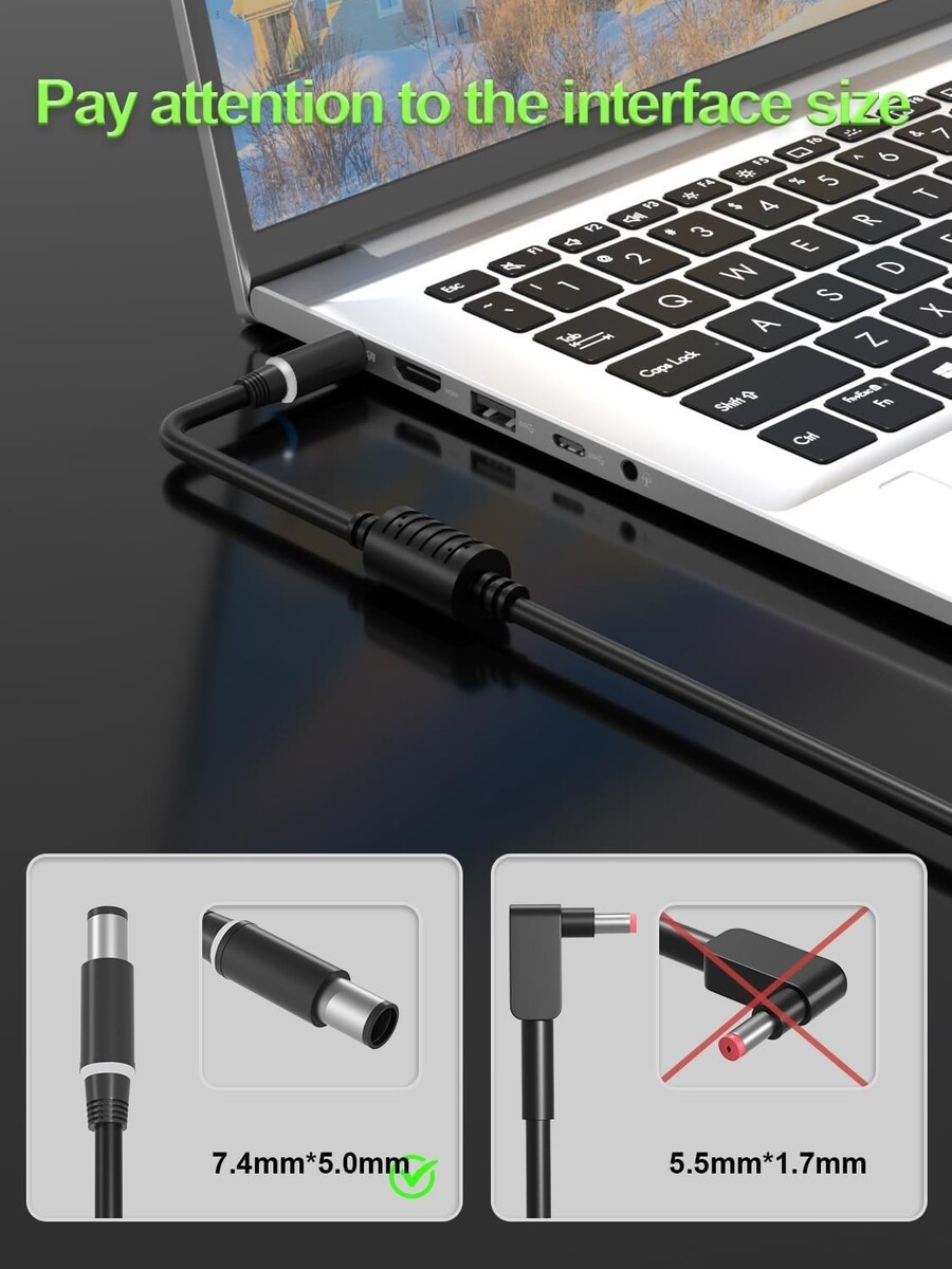 Important: This charger will not work with laptops requiring more than 240W or with smaller 5.5mm barrel connectors.