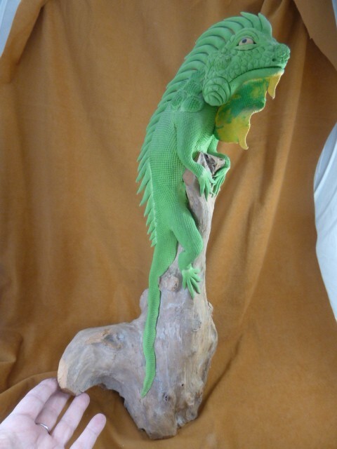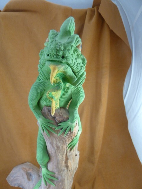 (Internal #TEAK-11) Excellent hand-crafted figurine of an Iguana on branch