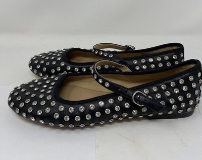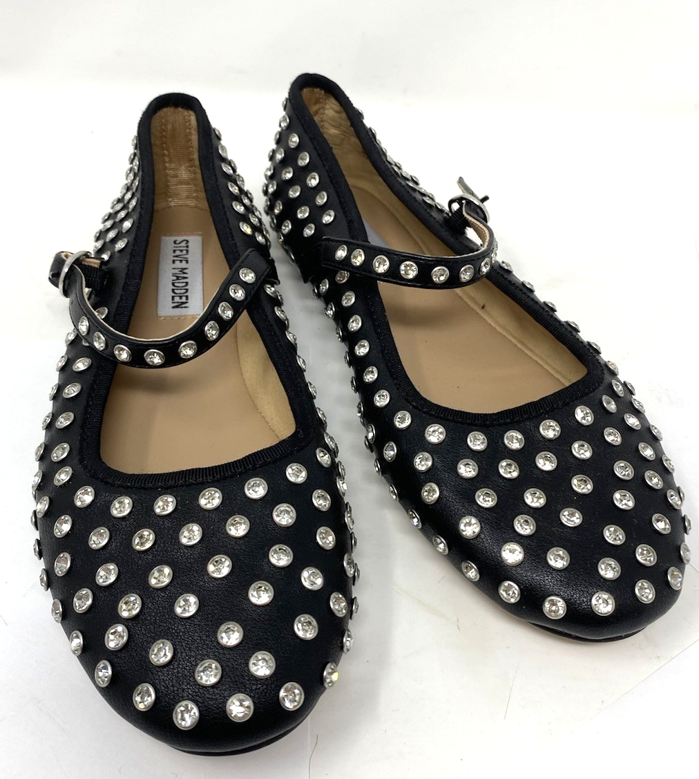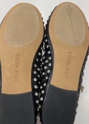 NWOB Steve Madden Black Vinetta Black Studded Ballet Slipper Shoe Size 6.5M