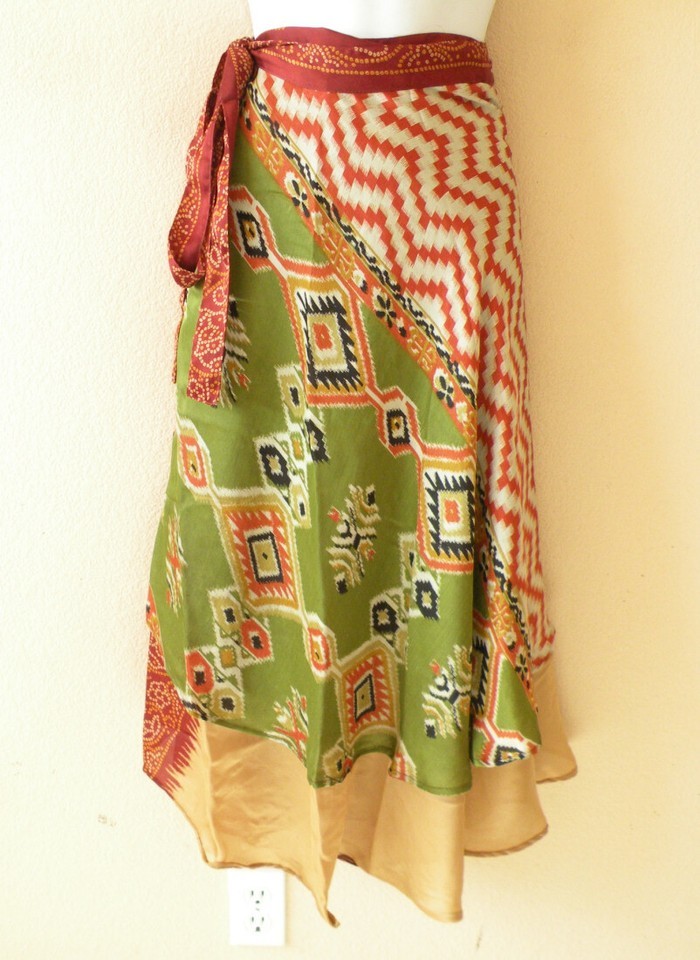 These wraps/skirts are made from recycled vintage saree silks. To ensure that we sell high quality silk wraps/skirts, we have double inspect for visible flaws.