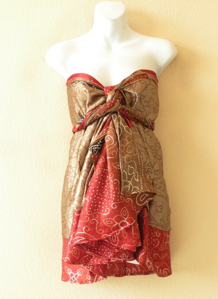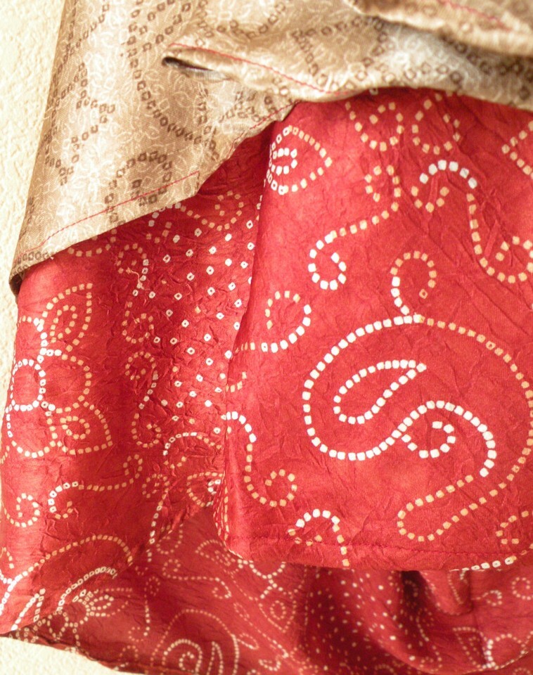 A luxurious blend of one of kind colors and prints enriched by a unique patterns. These beautiful 2 layers versatile vintage silk wraps offer an array of possibilities for over 100 ways to wear. You can achieve any number of looks from simple to sophisticated in skirt, dress, top, sarong, sari style, poncho or shawl.