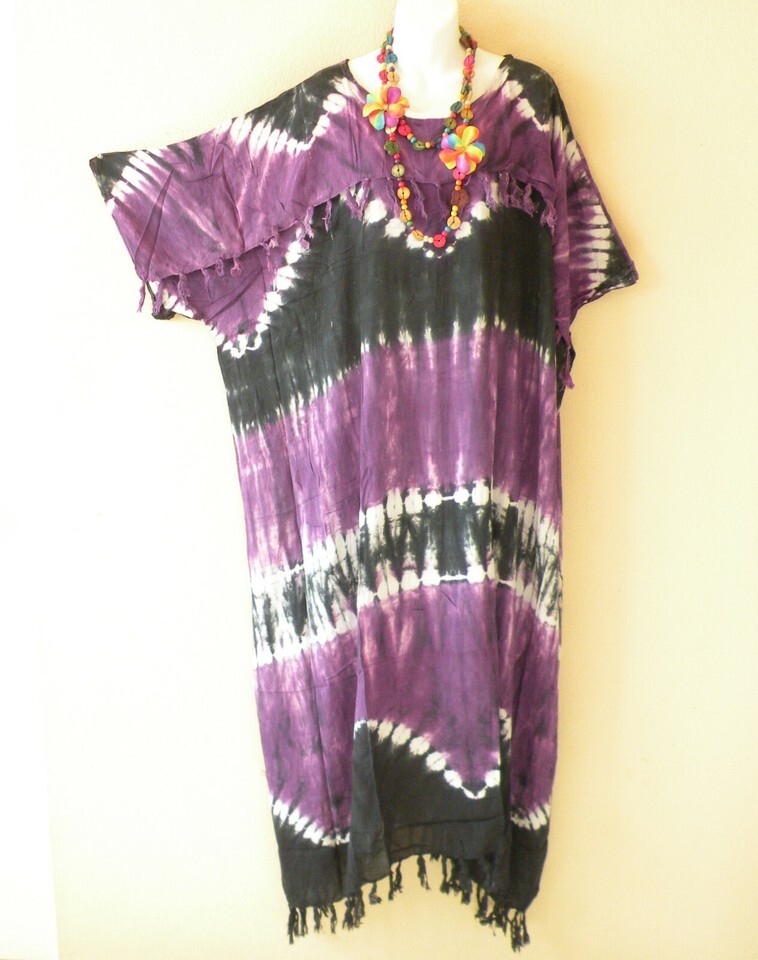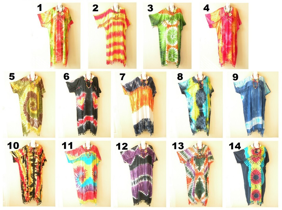 KG27 Tie Dye Kaftan Kimono Abaya Fringes Hippie Maxi Long Dress 2X, 3X, 4X, 5X