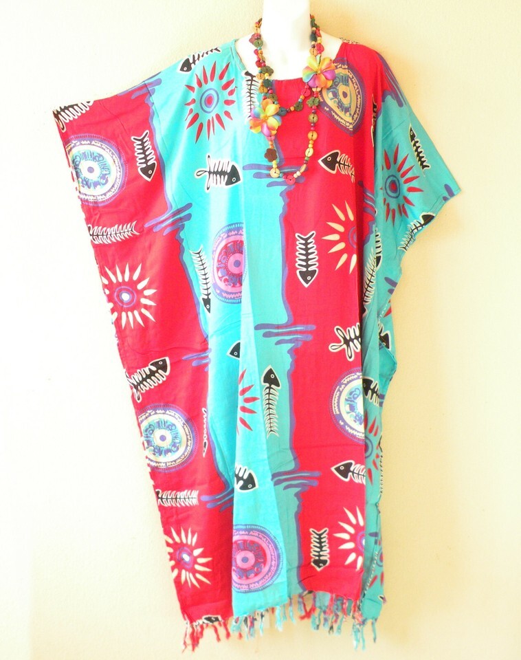 This gorgeous supreme plus size premium kaftan will definitely steal the show at the beach. It has a combination of luxurious hand drawn or block printed prints and colors. The nature of this kaftan complements wide range of body shapes and it drapes beautifully. Kick back and relax in this soft flowy kaftan or breeze through your day in ultimate comfort. Dress can be either round neck or v-neck. Available for request during checkout and I will try to fulfill if in stock.