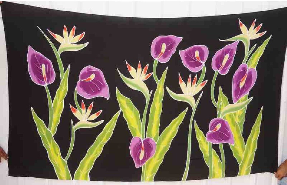 body shapes and sizes. This beautiful time consuming hand painted sarong is folded into half