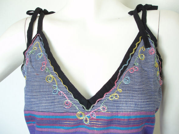 A luxurious blend of colors and gold metallic pin stripes material enriched by unique patterns. Colorful embroidery creates the design are sewn throughout the top.