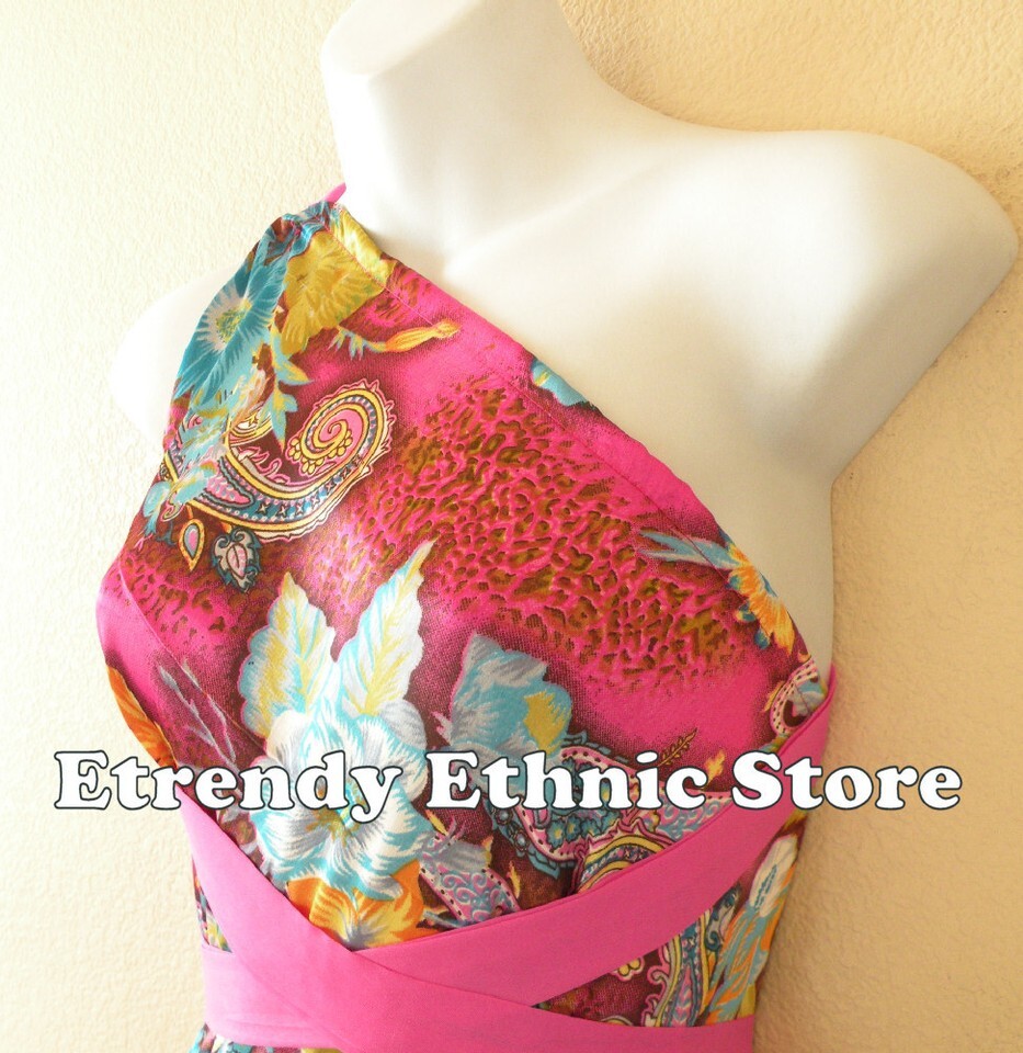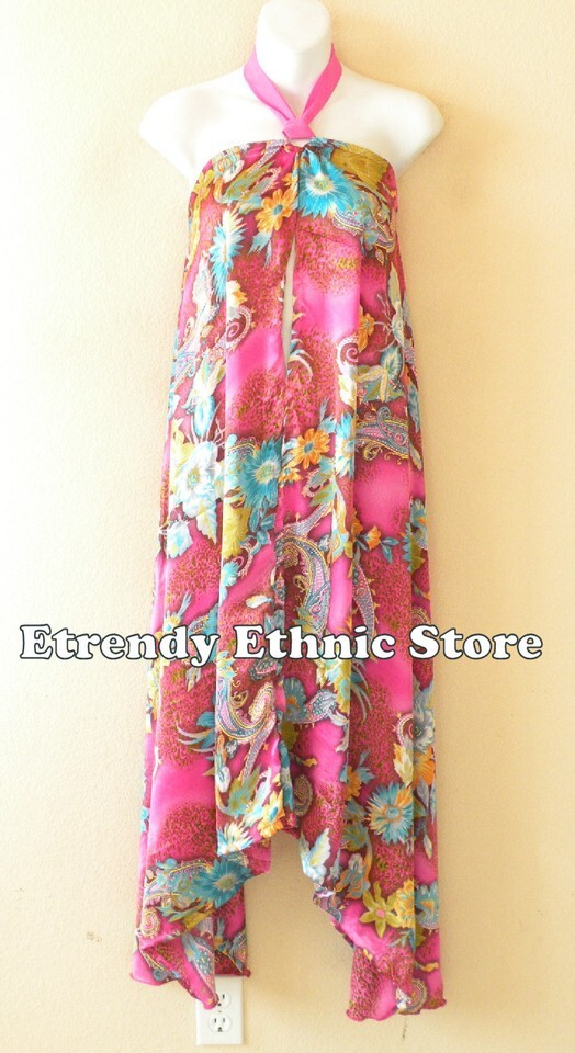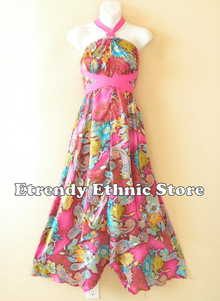 1D119 - Versatile Pink Floral Silk Multi Scarf Women Maxi Halter Dress Maternity