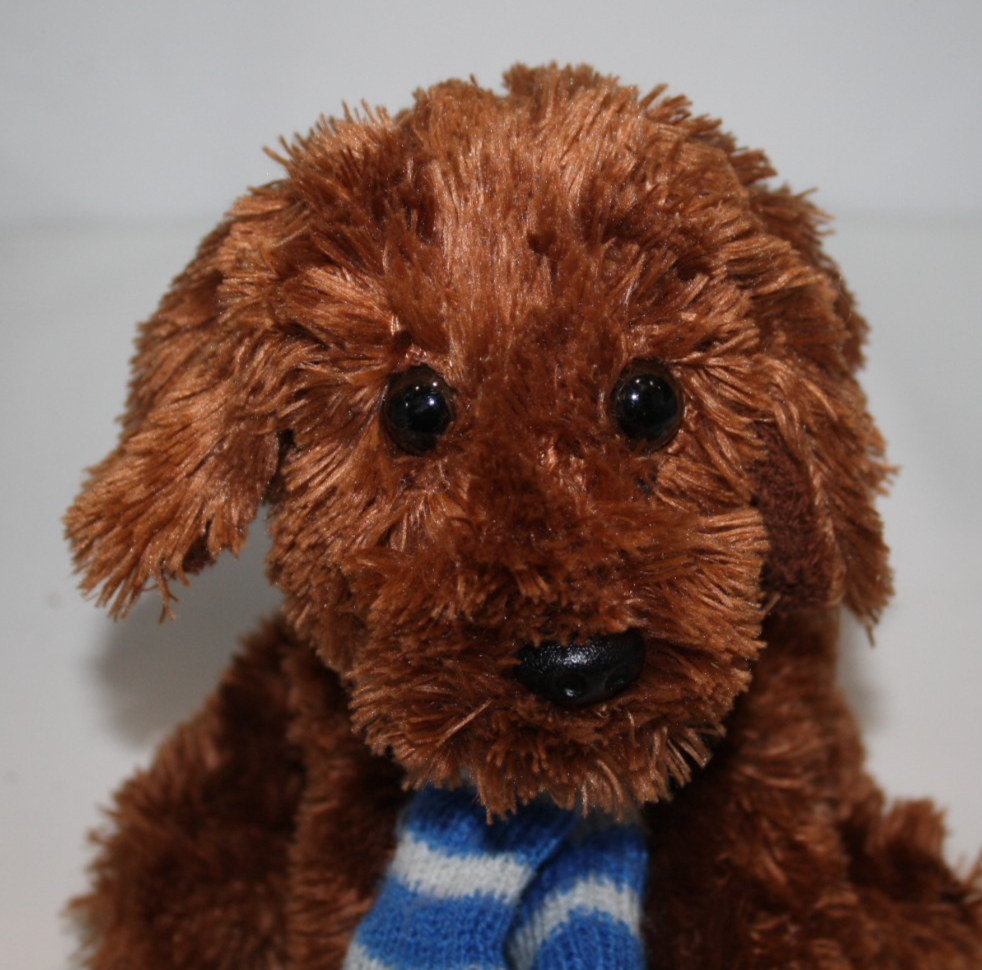 Animal Adventure, Puppy Dog, Approx 7 inch, Shaggy Brown Plush, Blue and White Knit Scarf, Soft Toy, Stuffed Animal, No tag