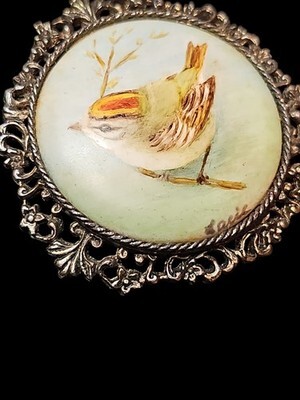 A sweet and timeless piece for bird lovers, vintage jewelry collectors, or anyone drawn to hand painted miniatures.