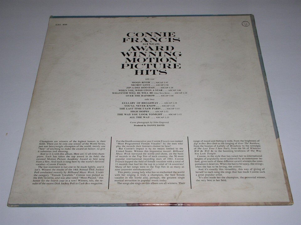 Connie Francis Sings Award Winning Motion Picture Hits Record Album LP MGM NM