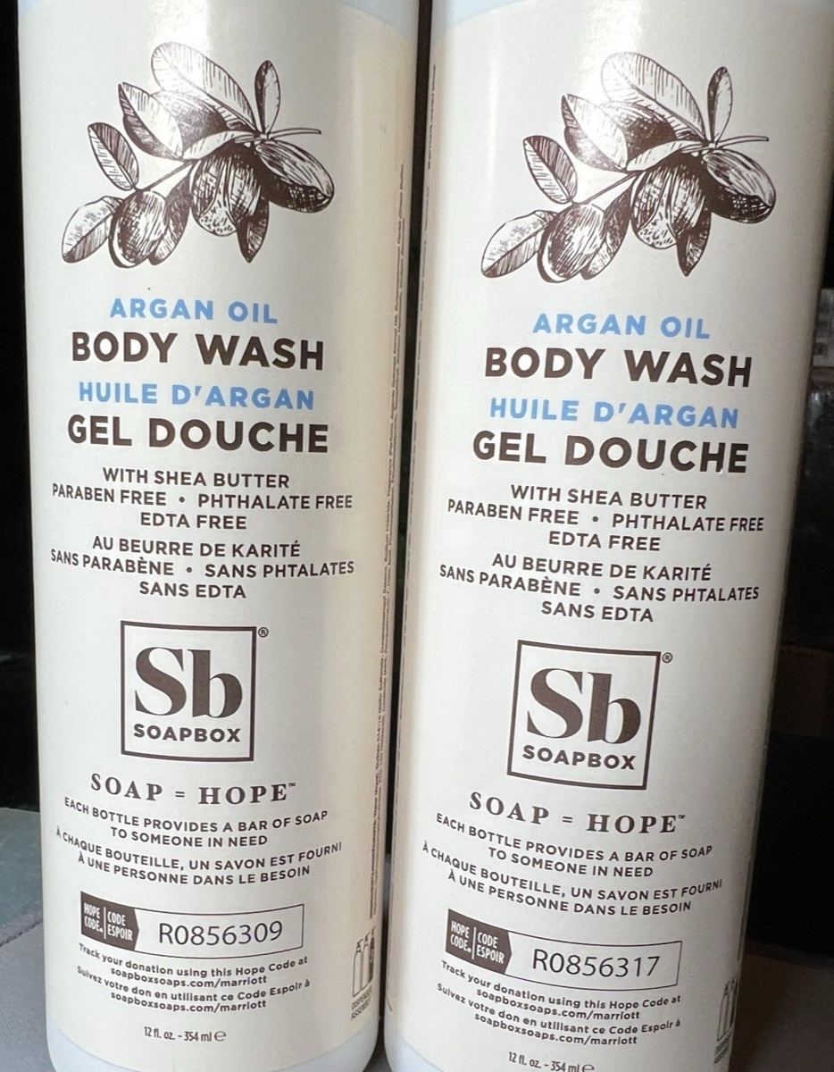 2 Bottles SoapBox Argan Oil BODY WASH With Shea Butter 12oz In Each
