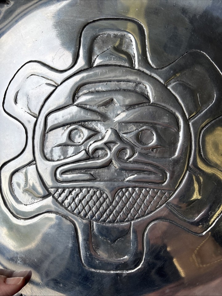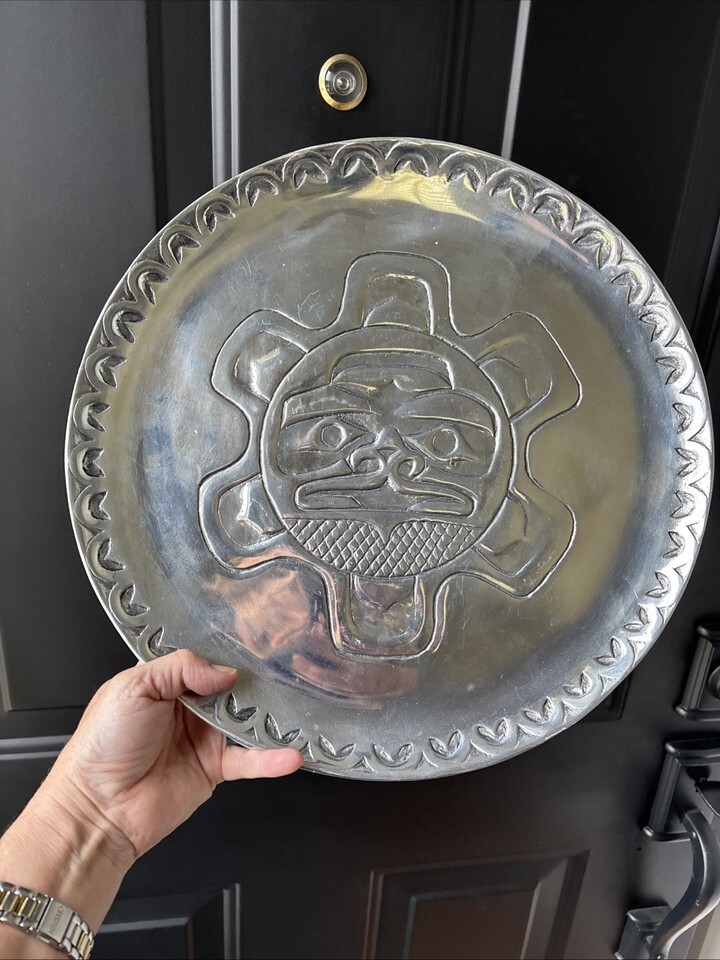 Northwest Pewter Co. Alaska Embossed Sun Spirit Round Plate Tray 13”