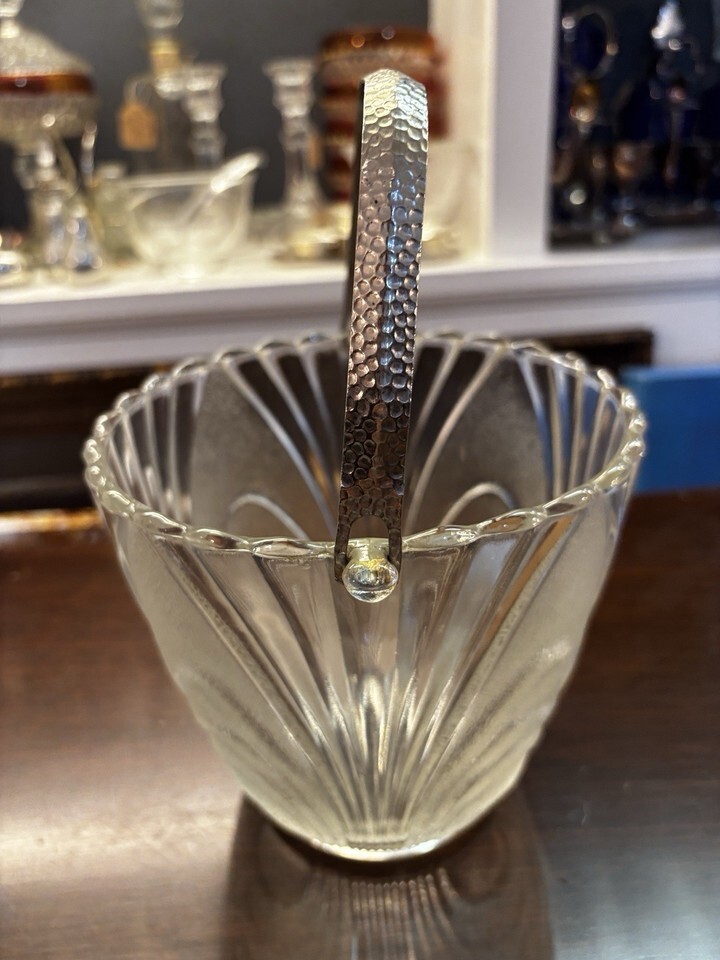 Brockway Nouveau Clear Ice Bucket Hammered Metal Handle Vintage