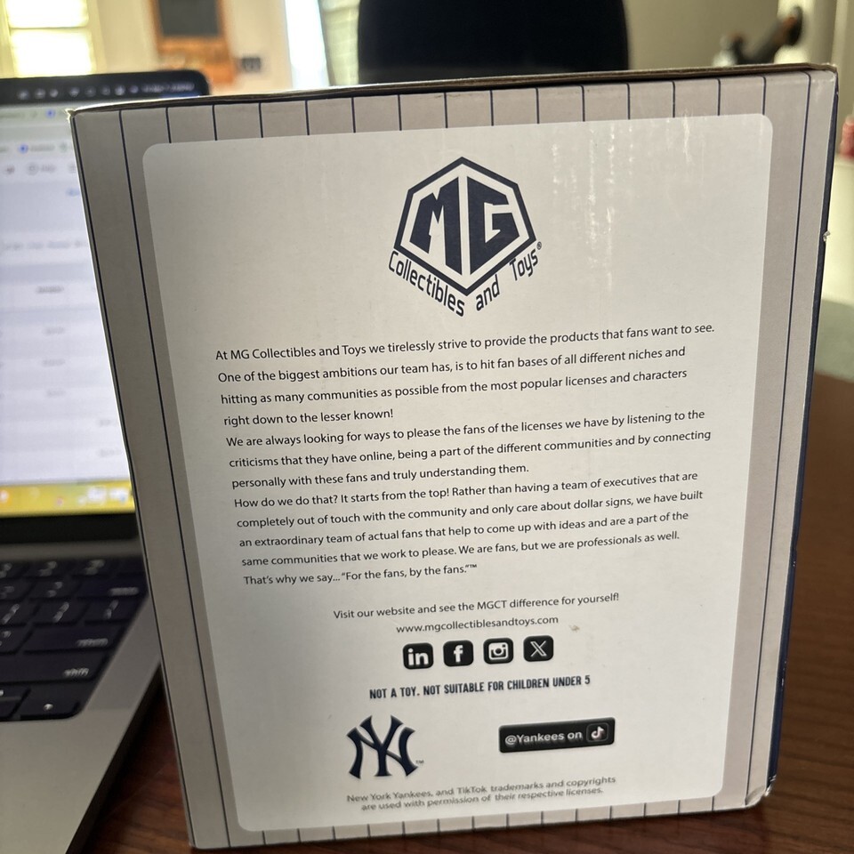 The product is a Juan Soto #22 collectible figure by MGCT, officially licensed by Major League Baseball. It features a representation of the player from the New York Yankees team. The box was taped closed. i have not opened. Not 100% sure if someone else opened it doesn?t appear that it was.