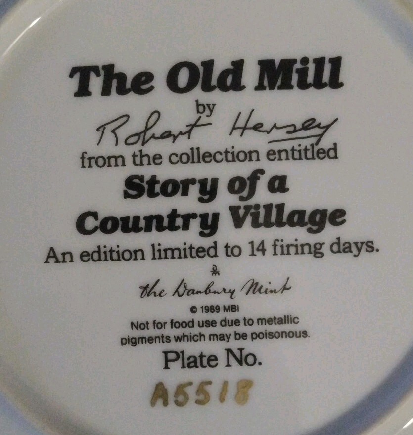 The Old Mill limited edition collector's plate Robert Hersey From Danbury Mint