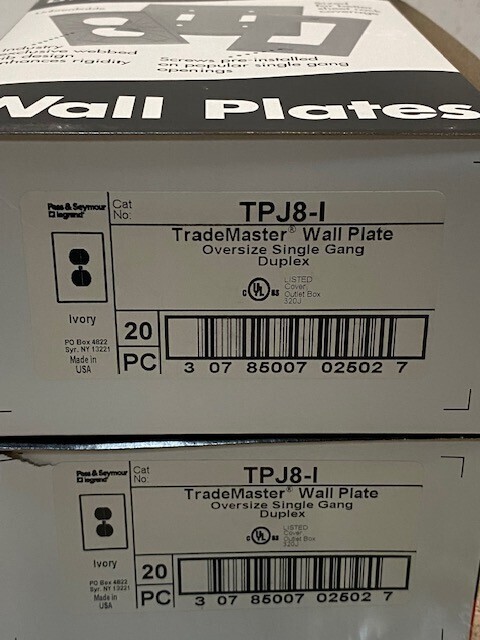 2 Boxes of 20 Quantity of Trade Master Wall Plates TPJ8-I (40 Quantity Total)