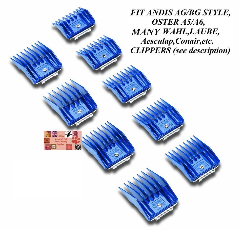 Combs Will fit Any Brand Size #30, #40 or #10 A5 Style (Detachable, Full-Size) blade such as Andis CeramicEdge, UltraEdge or ShowEdge Blades, Oster CryogenX Elite Blades, Wahl Competition Ultimate Competition Blades,Master Grooming Tools HLD, Silver and Ceramic Blades, Geib Buttercut Blades, DuraEdge or Value-Groom Blades, etc.