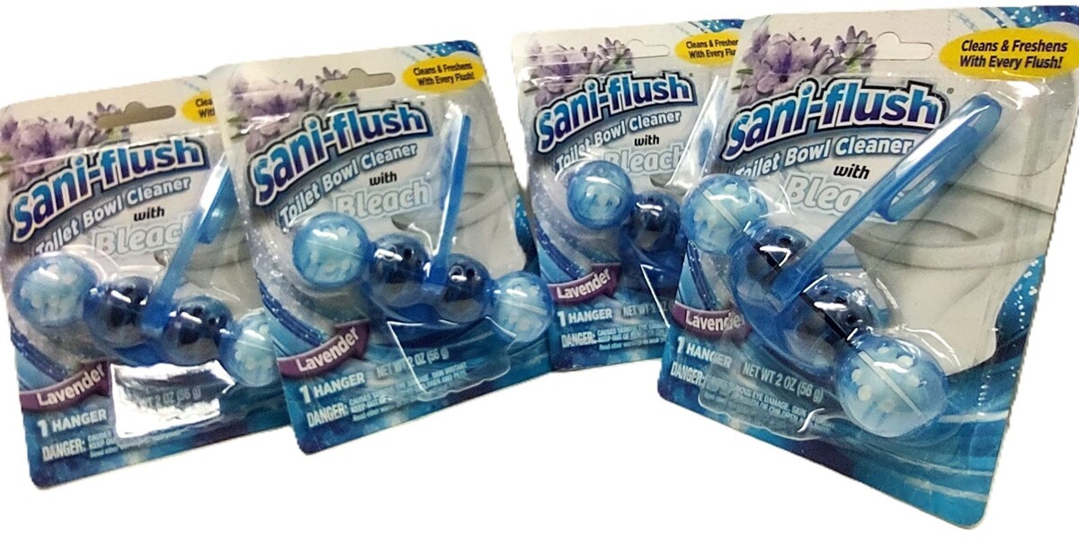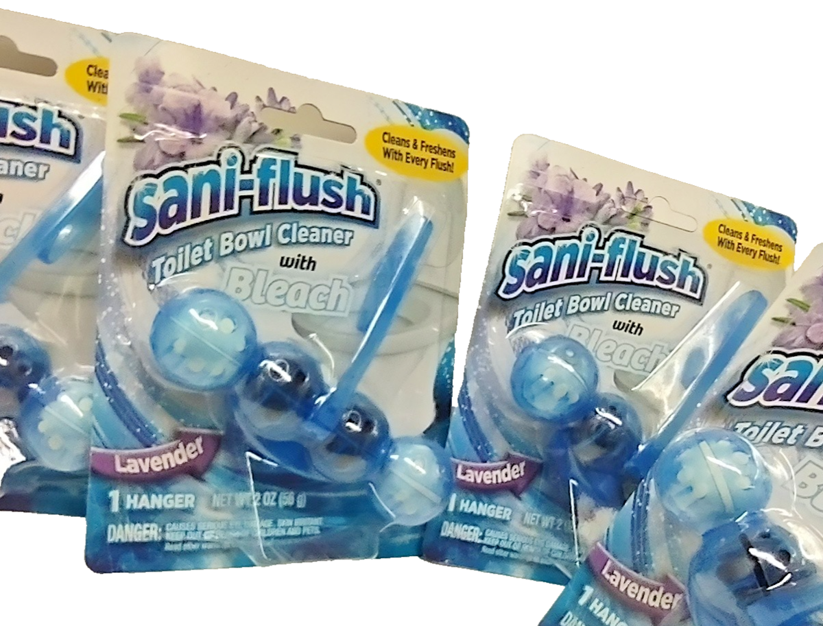 ( Lot of 4 ) Sani-Flush Toilet Bowl Cleaner Lavender w/Bleach 4Balls Hanger 2 Oz Each