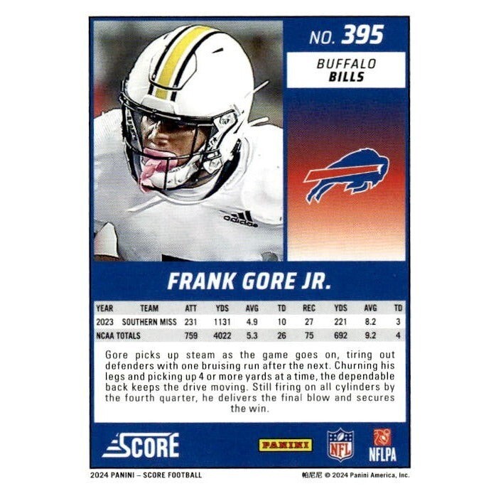 2024 NFL Score Football #395 Frank Gore Jr. RC Buffalo Bills Near Mint or Better