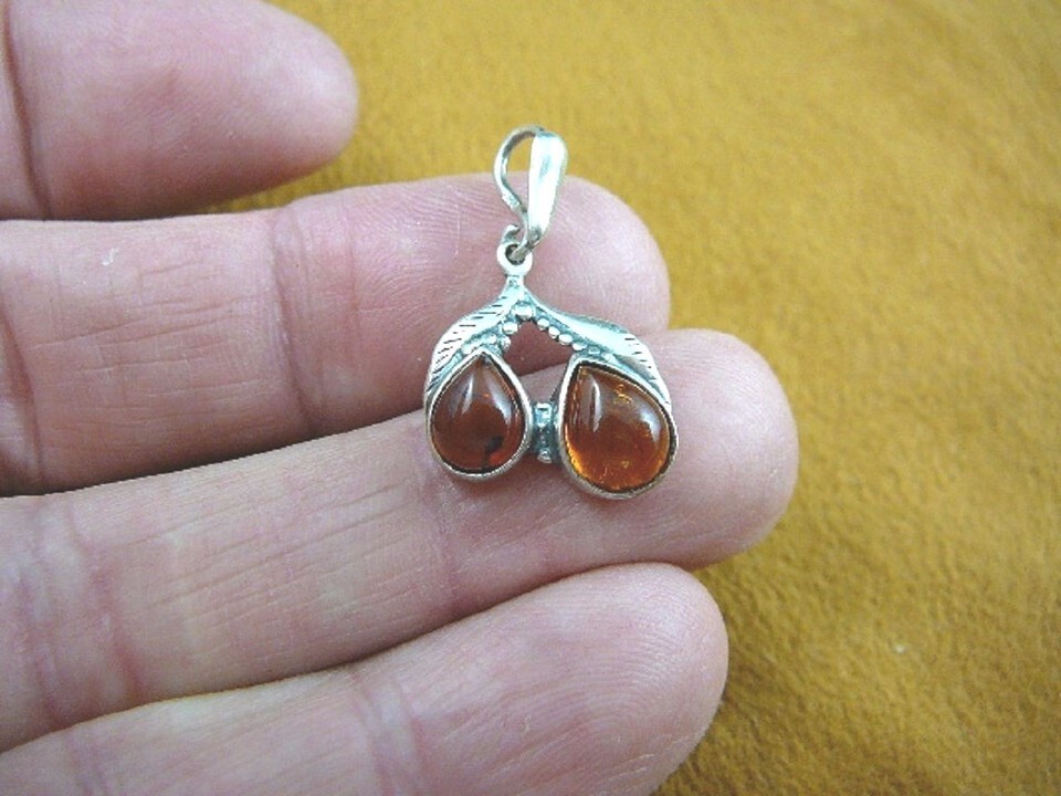 (P18-78) orange teardrop AMBER Poland .925 Sterling SILVER pear pears PENDANT