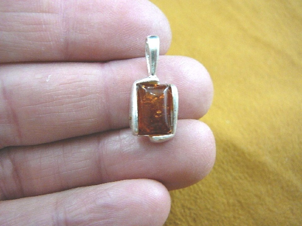 (P18-129) Golden orange AMBER rectangle solitaire .925 Sterling SILVER PENDANT