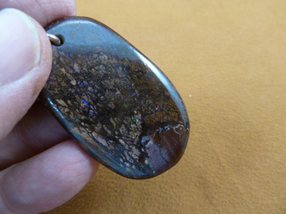 This is a "Yowah Opal" named for the town in Australia where these opals are mined. The brown you see is the stone matrix, with the beautiful blue, green, red and yellow opal showing through in lines of lightning and a shimmer of sparkle in many different ways. It is one of the hottest new types of opals coming on the market, and we were among the first to carry it! Purchased directly from the miners in Aussieland.