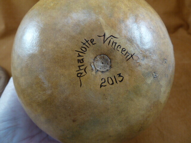 (internal #G-8) Excellent hand crafted decorative display GOURD by Charlotte Vincent, Lincoln CA.
