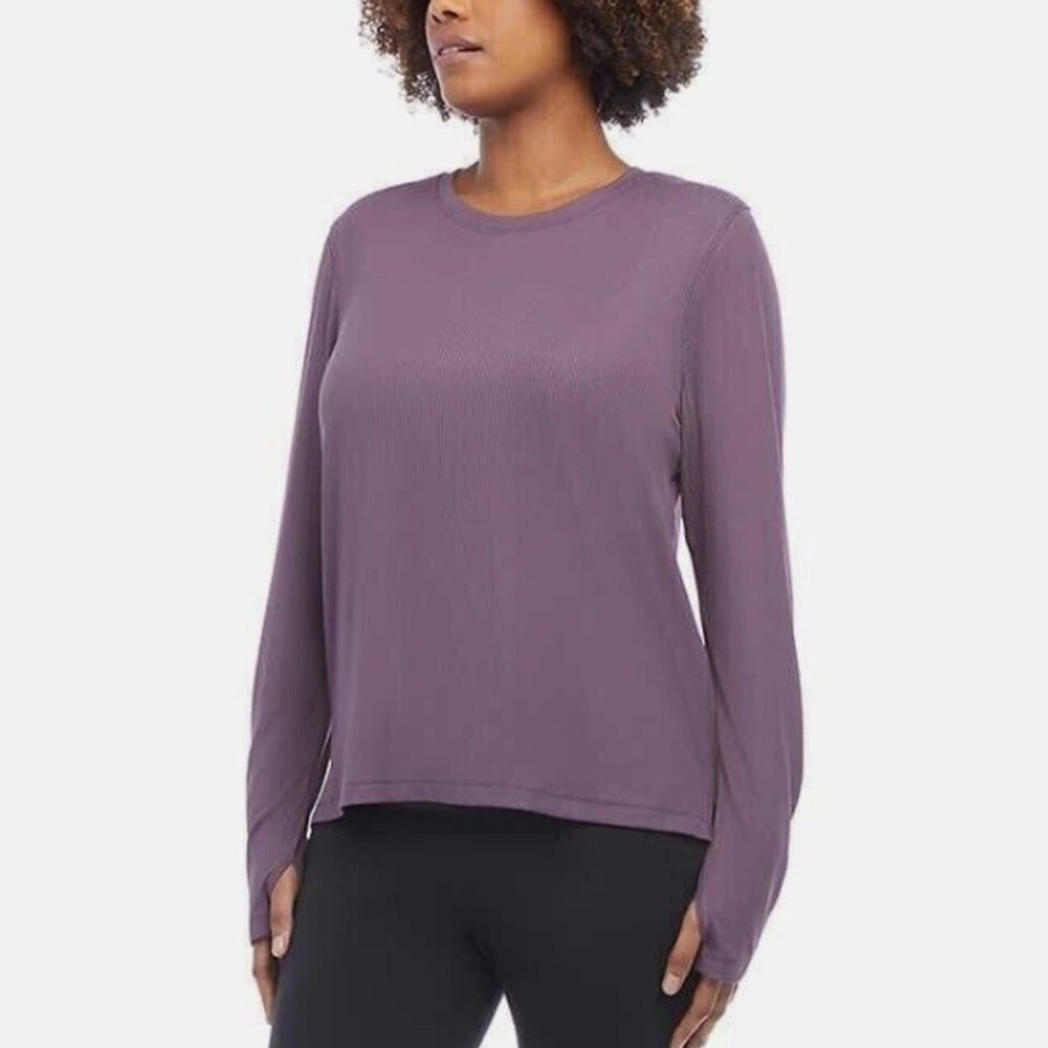 *Danskin Womens Ultimate Rib Long Sleeve Tee Activewear - LARGE