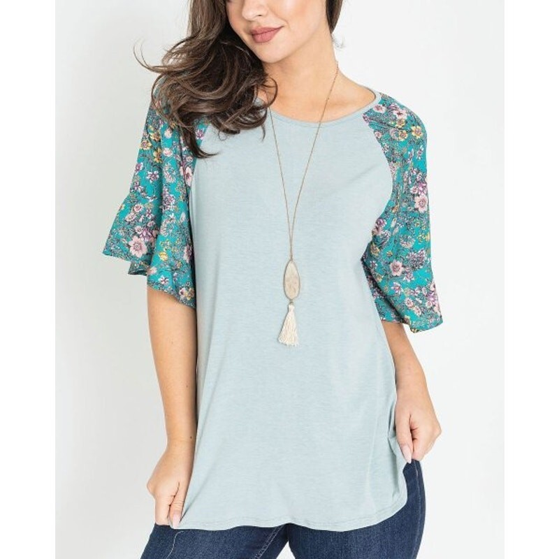 Eloges Teal & Light Blue Floral Trumpet-Sleeve Raglan Tunic