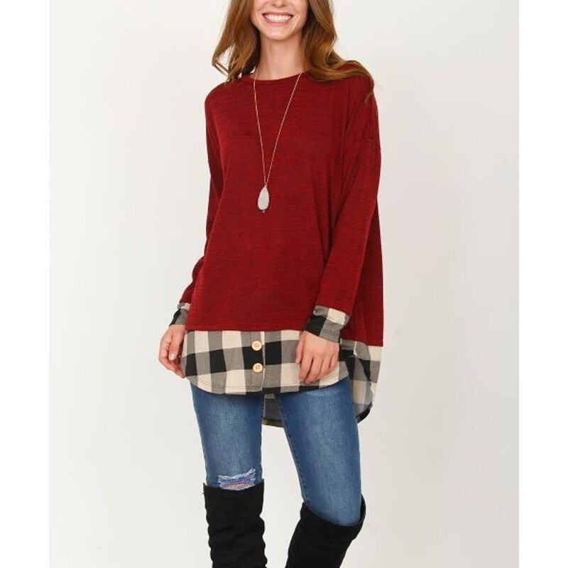 EGS by Eloges Plus Size Burgandy & White Buffalo Check - Accent Tunic - 3X