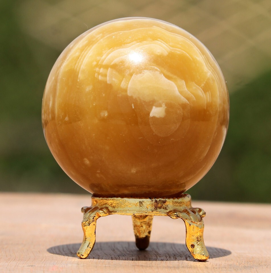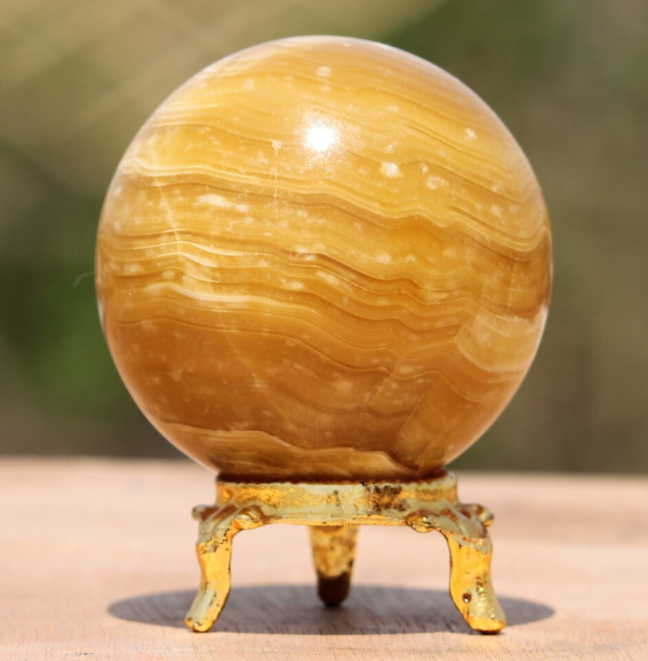 50mm/130g Superb Quality Carved Small Size Yellow Banded Calcite Quartz Healing Crystal Stone Sphere ball with stand.