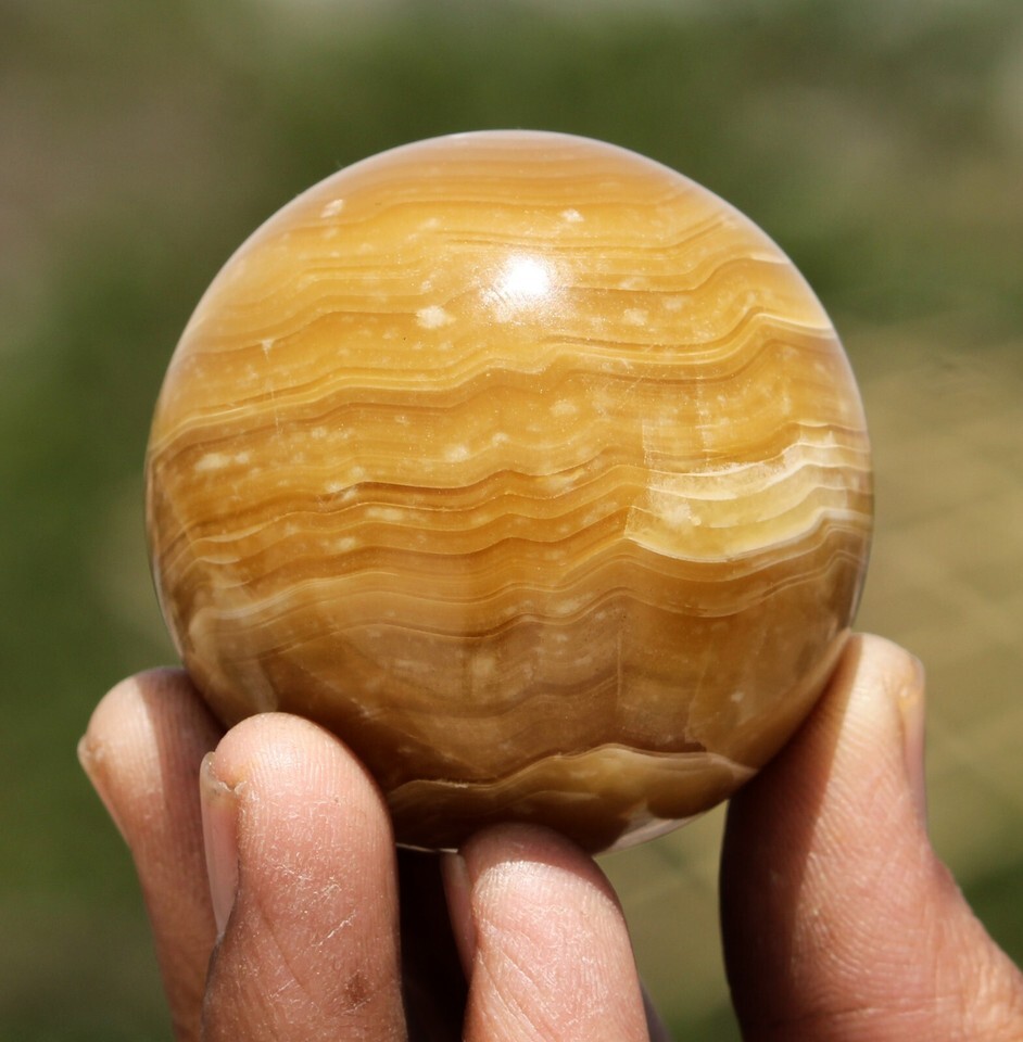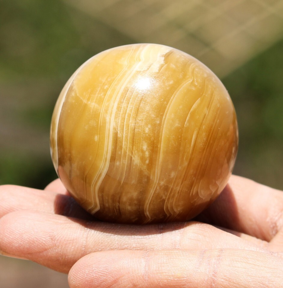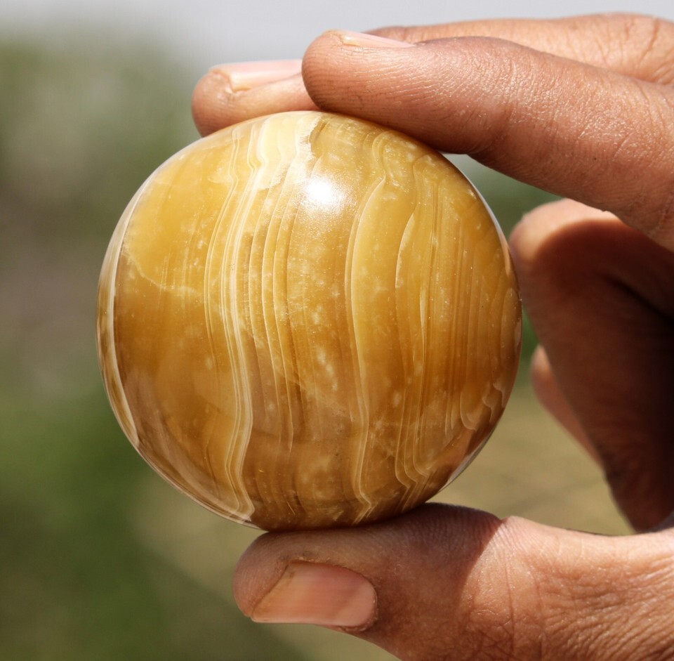 130g Yellow Banded Calcite Quartz Crystal Healing Chakra Energy Stone Sphere
