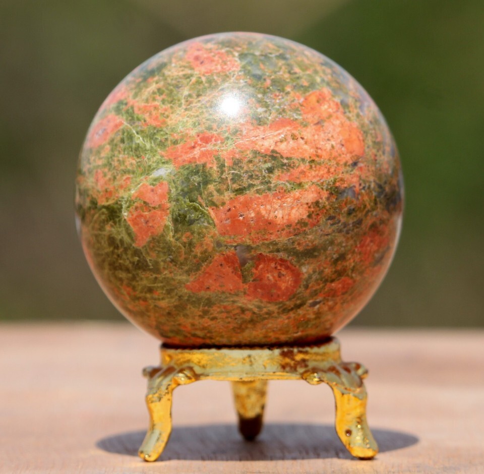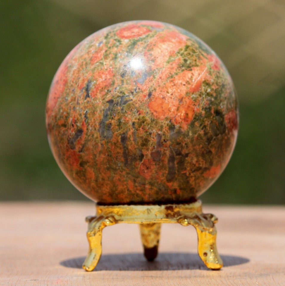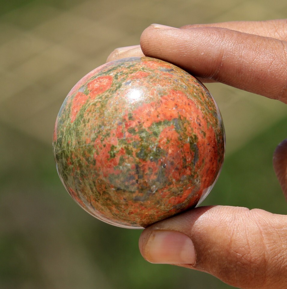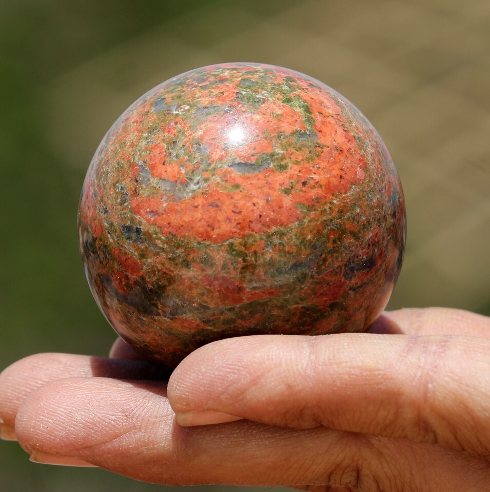 210g Green & Red Unakite Crystal Healing Chakra Energy Stone Metaphysical Sphere