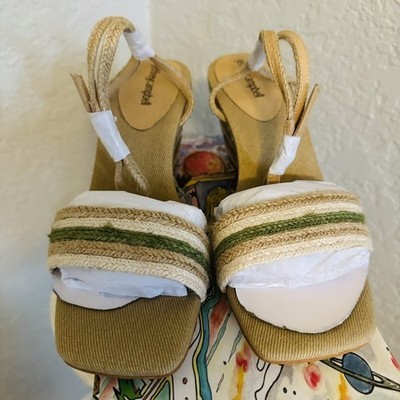 Jeffery Campbell Women's Sailboat Wedge Jute Sandals, Tan/Green, Size 9, NWT
