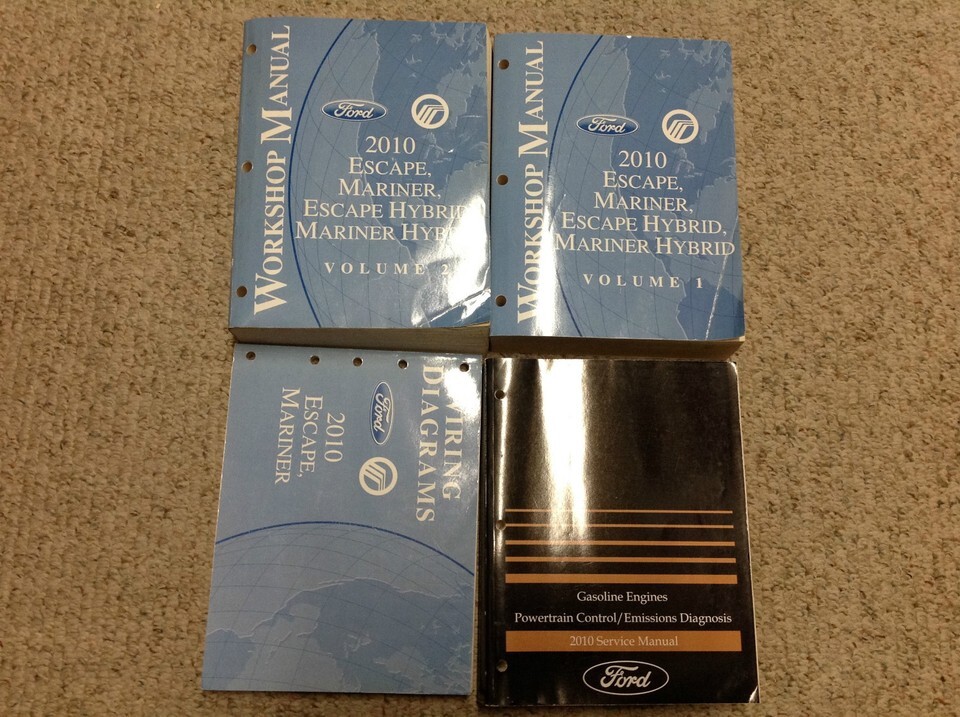 FACTORY 2010 Ford Escape/Mariner/Escape Hybrid/Mariner Hybrid Service Manual 2 Volume Set, NON HYBRID Powertrain Control Emission Diagnosis Manual, and the NON HYBRID Electrical Wiring Diagram Manuals.