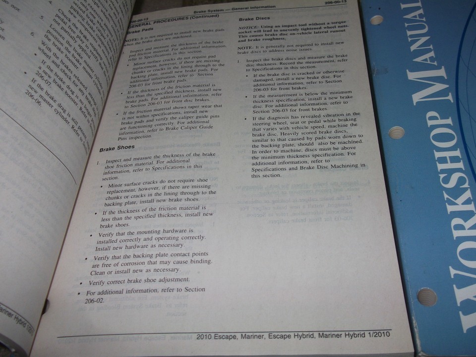 Full of information and illustrations, covers everything, step by step instructions, assembly/disassembly, exploded illustrations/diagrams/troubleshooting, great manual to have when owning/servicing a ESCAPE and will be a great aid to keep your ESCAPE/MARINER on the road. These manuals will save you money in repairs/service. A must have if you own one of these vehicles.