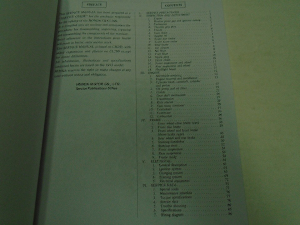 BRAND NEW IN THE BOX SECOND PRINTING 1974 may fit other years CB200/CL200 HONDA Service Manual