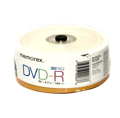 DVD-R 30 pack Spindle - 16x 4.7GB Memorex 120 minutes Blank DVD Sealed