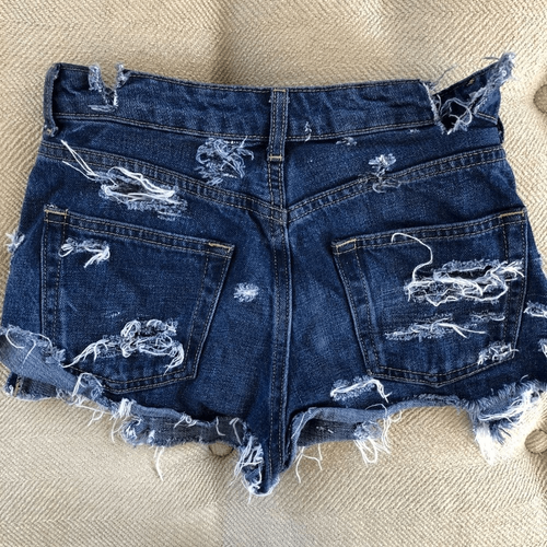 Top shop petite Moto shorts. Destroyed denim. Laying flat measures approximately 12 inches straight across with an 11 inch rise and 1 inch inseam. Tag size 25, which is approximately a US extra small.