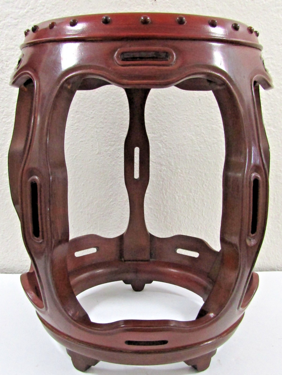 Vintage Rosewood Hollywood Regency Barrel Stool Drum Plant Stand