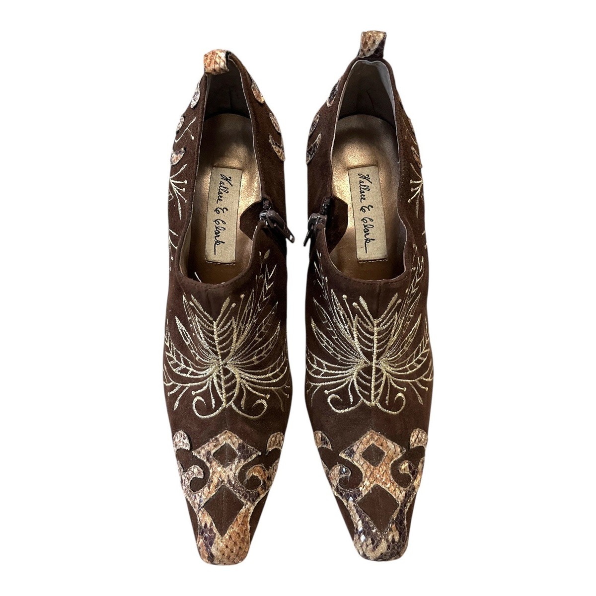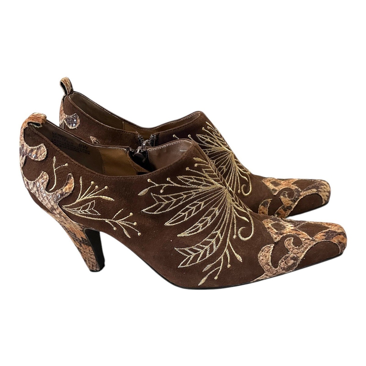 Wallace Clark Vangie Women?s Brown Snakeskin Embroidered Heels Size 8W