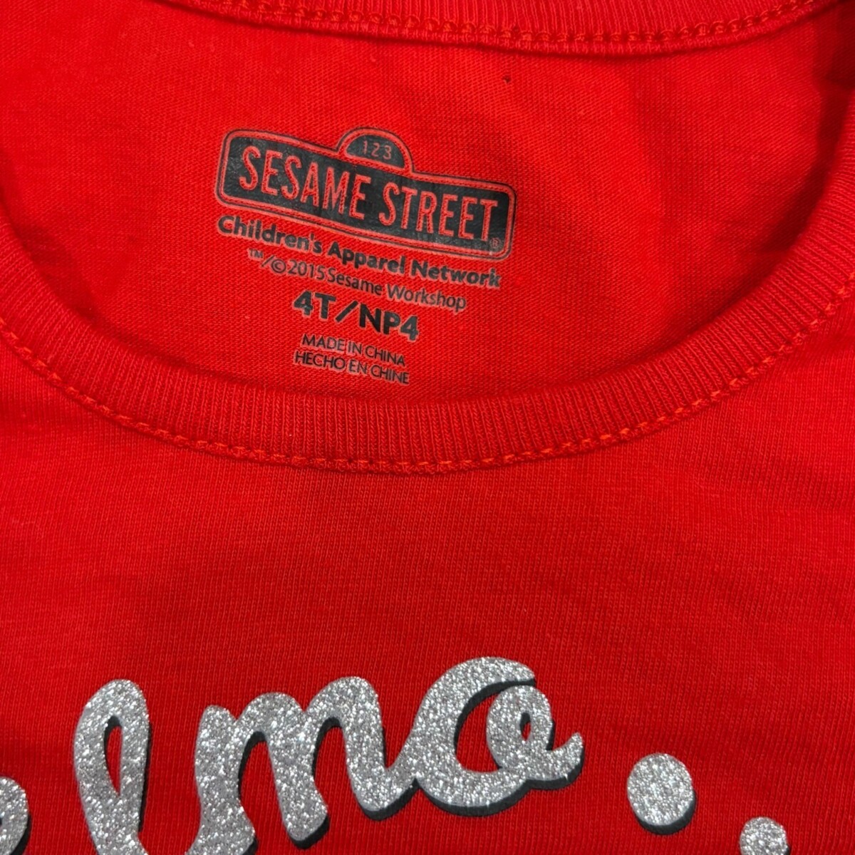 ? Features Elmo graphic with glitter accents