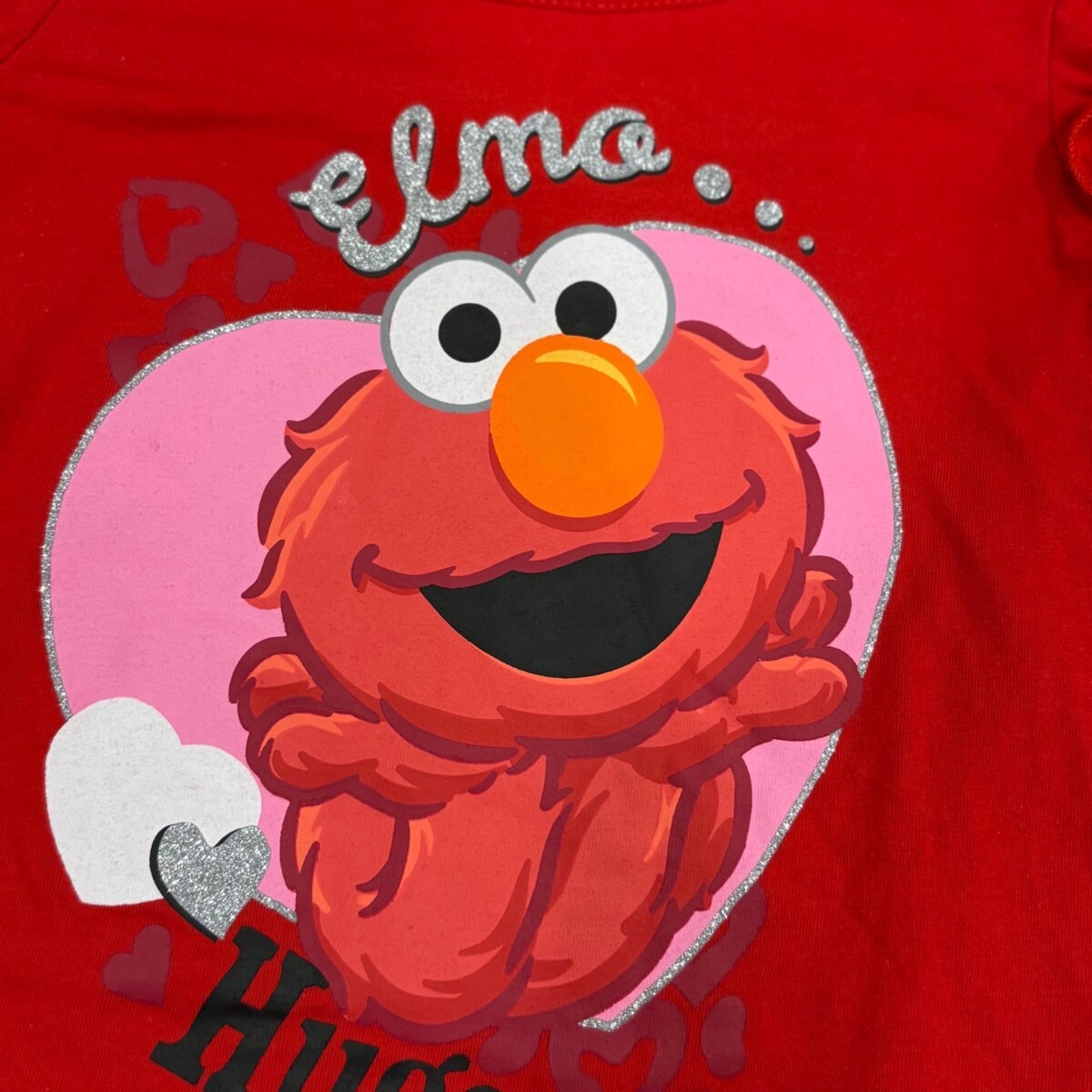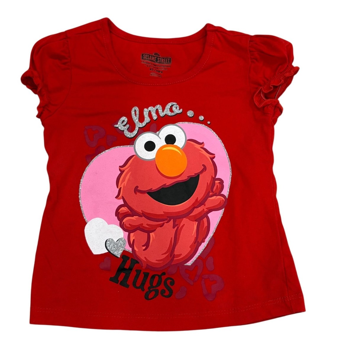 Sesame Street Elmo Hugs Valentine's Red Glitter Graphic T-Shirt 4T