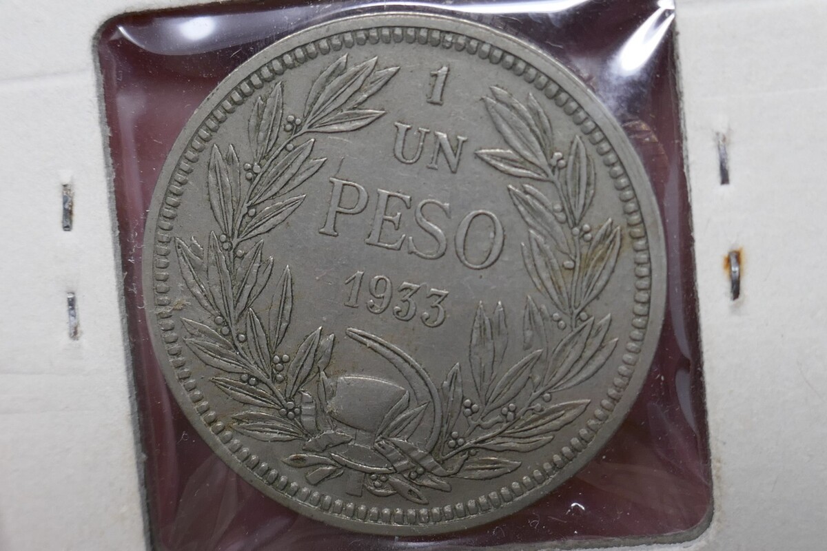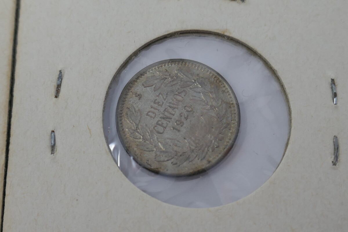 1920 Ten Cents 10 Centavos Silver Coin and 1933 Un Peso Copper-Nickel Coin.