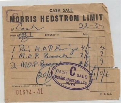 Morris Hedstrom Limited Cash Sale Receipt 1967 Suva Fiji