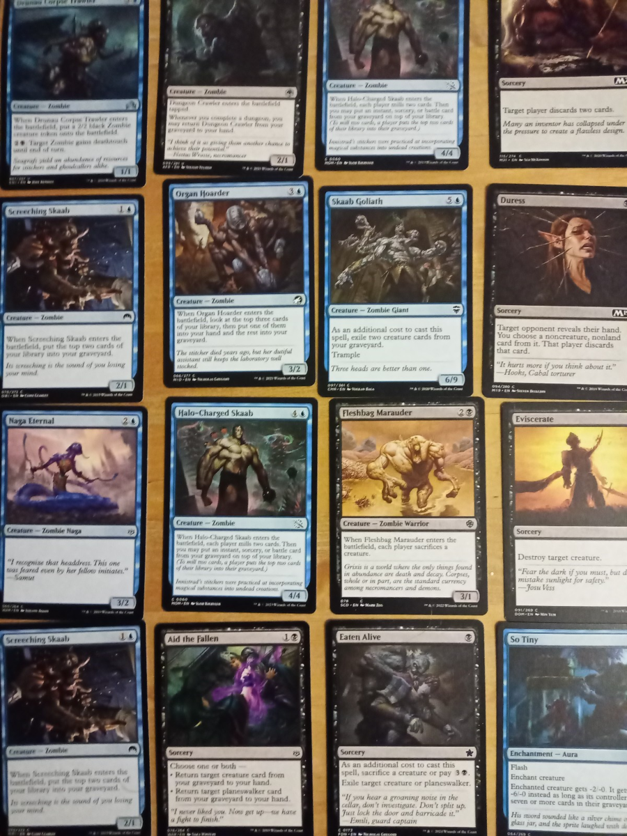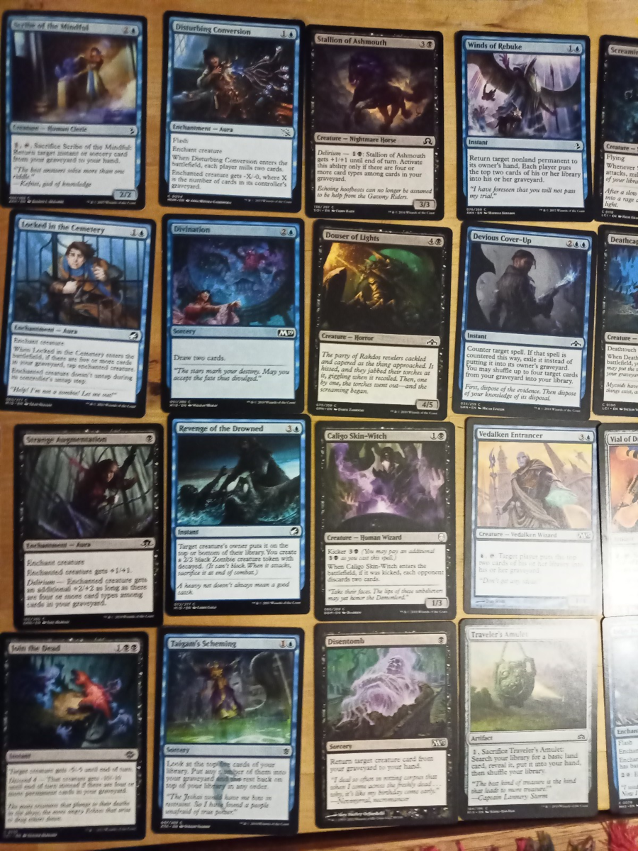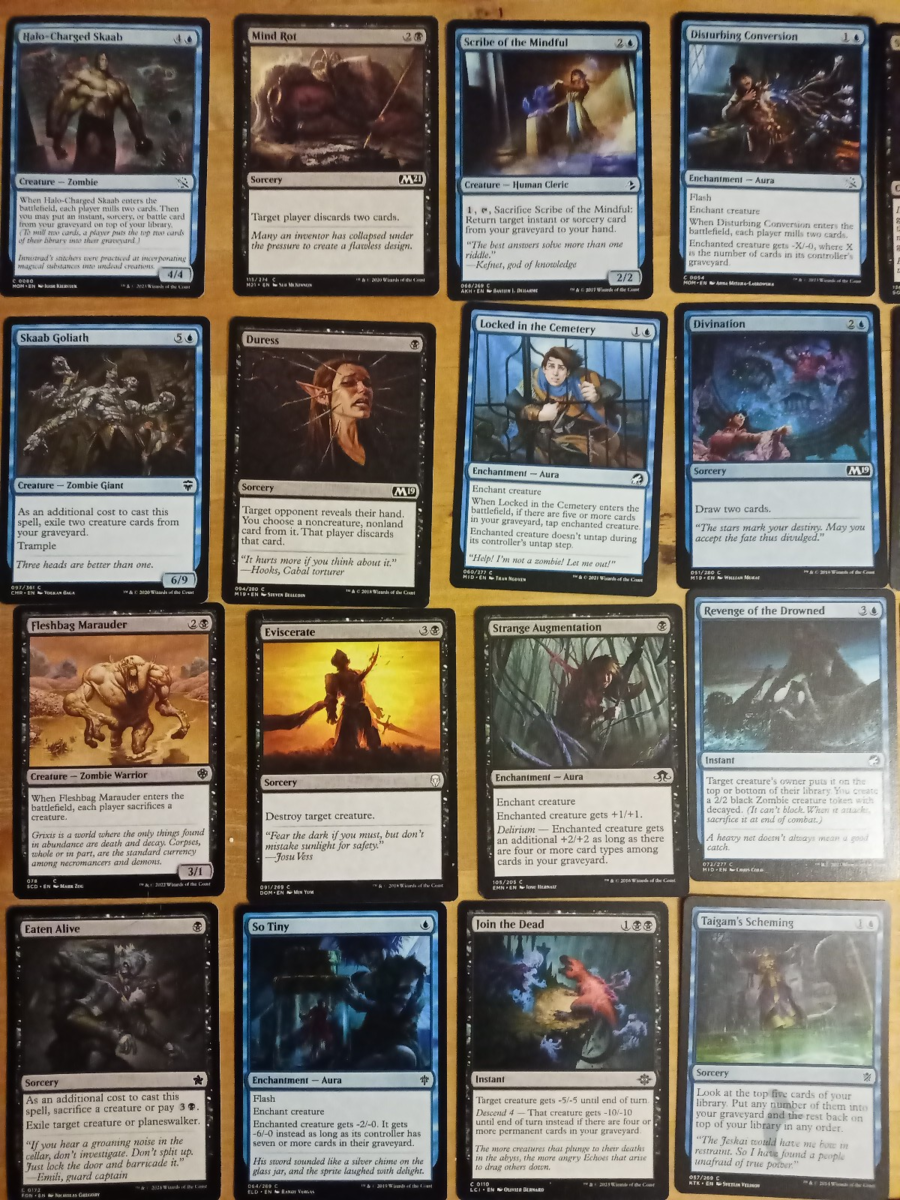 Magic The Gathering Zombie Black Blue Deck 60 Cards. Concentrates On Graveyard Synergy with mill effects and Creature/spell effects. Plenty of anti creature spells and enchants and discard effects. Delirium, Threshold, Descent
