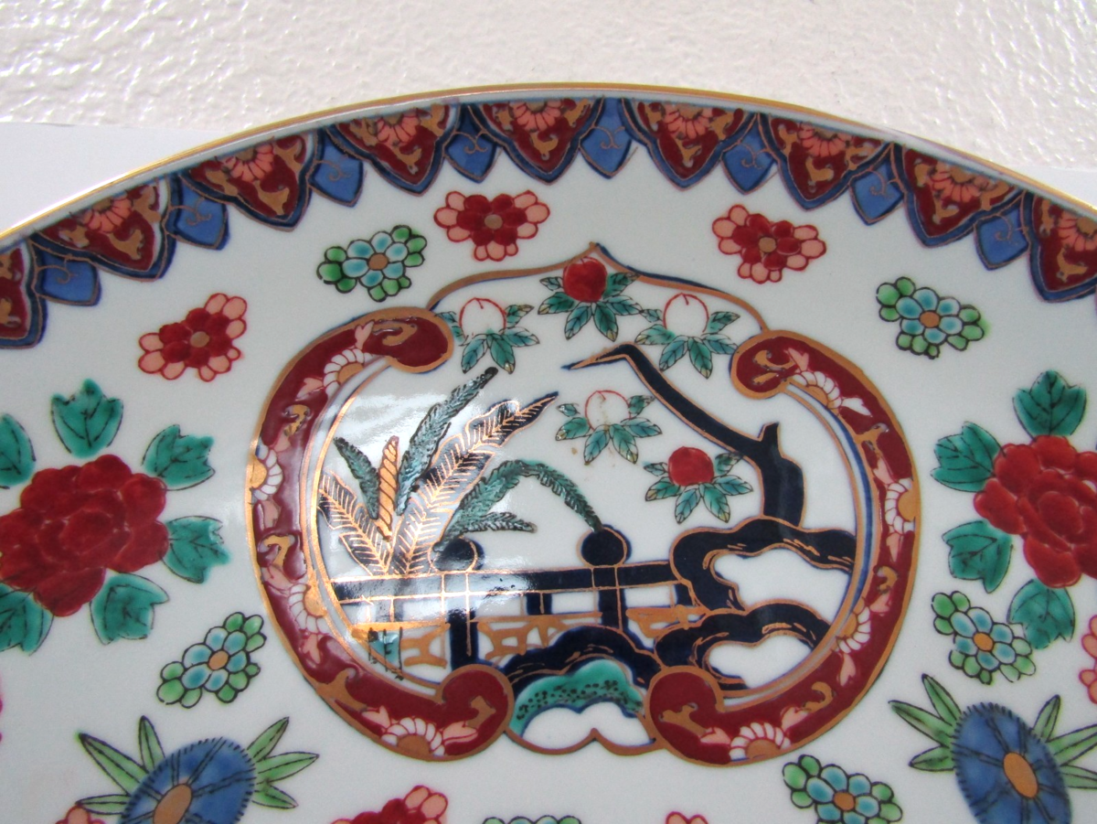 Vintage Gold Imari Large Hand Painted Floral Porcelain Bowl or Plate 18" Dia.