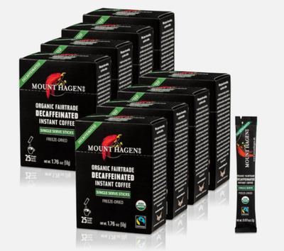 ? Mount Hagen - Organic Fairtrade Decaffeinated Instant Coffee 25ct - Case of 8 - 1.76 OZ Date of 10/2026 New in Case Pack Box