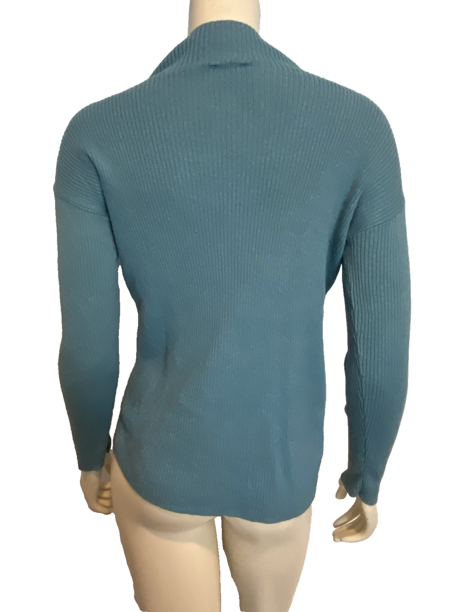 Talbots Petite Blue Ribbed Knit Funnel Neck Long Sleeve Top Size P